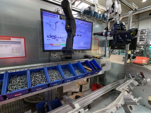 Die exakte Montage von Norm- und Anbauteilen, wie Blindnietmuttern, Gewindeeinsätzen oder Kunststoff-Kleinteilen, erfolgt vollautomatisiert oder durch manuelle, werkergeführte Montagezellen. Hierbei werden sämtliche relevanten Prozessparameter erfasst, zu Qualitätssicherungszwecken analysiert und zur Nachverfolgung gespeichert. Visualisierungen der Montageschritten unterstützen unsere Mitarbeiter, um einen schonenden Arbeitsablauf einzuhalten.